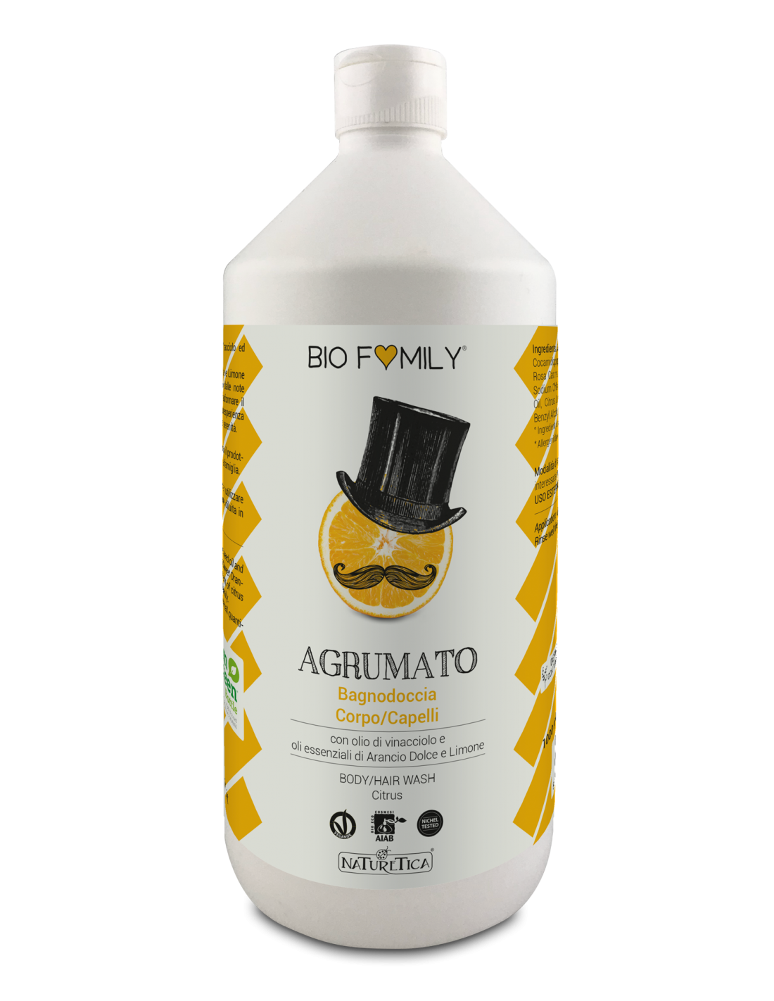 Ingredienti: Aqua, Ammonium Lauryl Sulfate, Cocamido- propyl Betaine, Vitis Vinifera Seed Oil, Rosa Canina Fruit Extract°, Glycerin, Sorbitan Caprylate, Arginine, Sodium Chloride, Citrus Sinensis peel oil expressed, Citrus Limon fruit oil, Benzoic Acid, Benzyl Alcohol, Phenoxyethanol, Limonene*.
