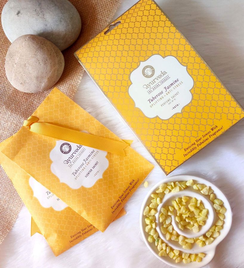 Sacchetti Profumati Ayurveda con Essenza di Tuberosa e Gelsomino - Equilibrio Dosha Vata Sinfonia Aromatica per l'Anima: Scoprite la maestria dell'aromaterapia con i nostri sacchetti profumati Ayurveda, un connubio perfetto tra l'opulenza della Tuberosa e la delicatezza del Gelsomino. Questa fragranza, pensata per alleggerire lo spirito e ridurre lo stress, è ideale per riequilibrare il Dosha Vata, favorendo una sensazione di benessere e tranquillità interiore. Eccellenza in Ogni Soffio: I sacchetti sono imbevuti con 20 g di una selezionata miscela di erbe aromatiche e polvere minerale, per una durata profumata di 30-40 giorni. La strategica combinazione di Tuberosa e Gelsomino non solo profuma i vostri spazi ma serve anche come un naturale anti-stress. Nel rispetto della filosofia Ayurvedica, i sacchetti profumati sono riempiti con erbe 100% naturali e polvere minerale che assicurano un rilascio costante dell'aroma. Impegnati nella sostenibilità, garantiamo un prodotto non tossico, sicuro per l'uso quotidiano e rispettoso dell'ambiente. Facilità di Utilizzo: La semplicità è al cuore della nostra filosofia. Per vivere l'esperienza, rimuovete il sacchetto dall'involucro e posizionatelo dove preferite. Sia che lo appendiate nell'armadio, in auto o in una stanza, ogni sacchetto trasforma l'ambiente circostante in uno spazio di puro comfort e relax. Aroma Versatile per Ogni Spazio: I sacchetti profumati sono concepiti per essere utilizzati in diversi ambienti. Possono essere collocati in auto, in cassetti, cucine, bagni o sotto il sacco della spazzatura. Aggiungendoli ai capi di abbigliamento durante il cambio stagionale, preserverete la freschezza e l'aroma piacevole per lungo tempo.
