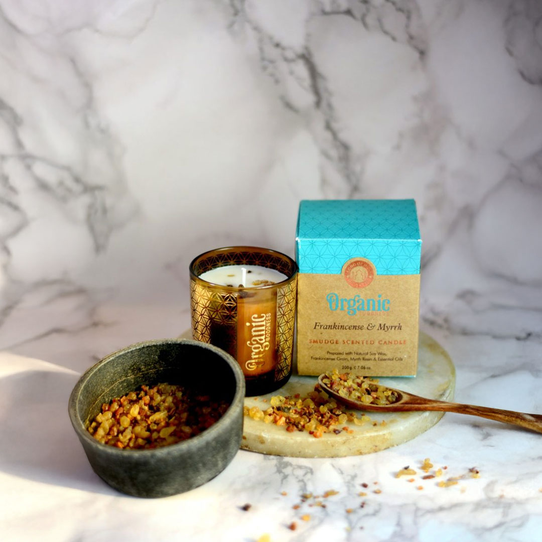 FRANKINCENSE E MIRRA: una fragranza morbida e legnosa, arricchita dalla dolcezza della mirra, che ti accompagnerà nelle tue pratiche meditative aiutandoti a calmare lo spirito.