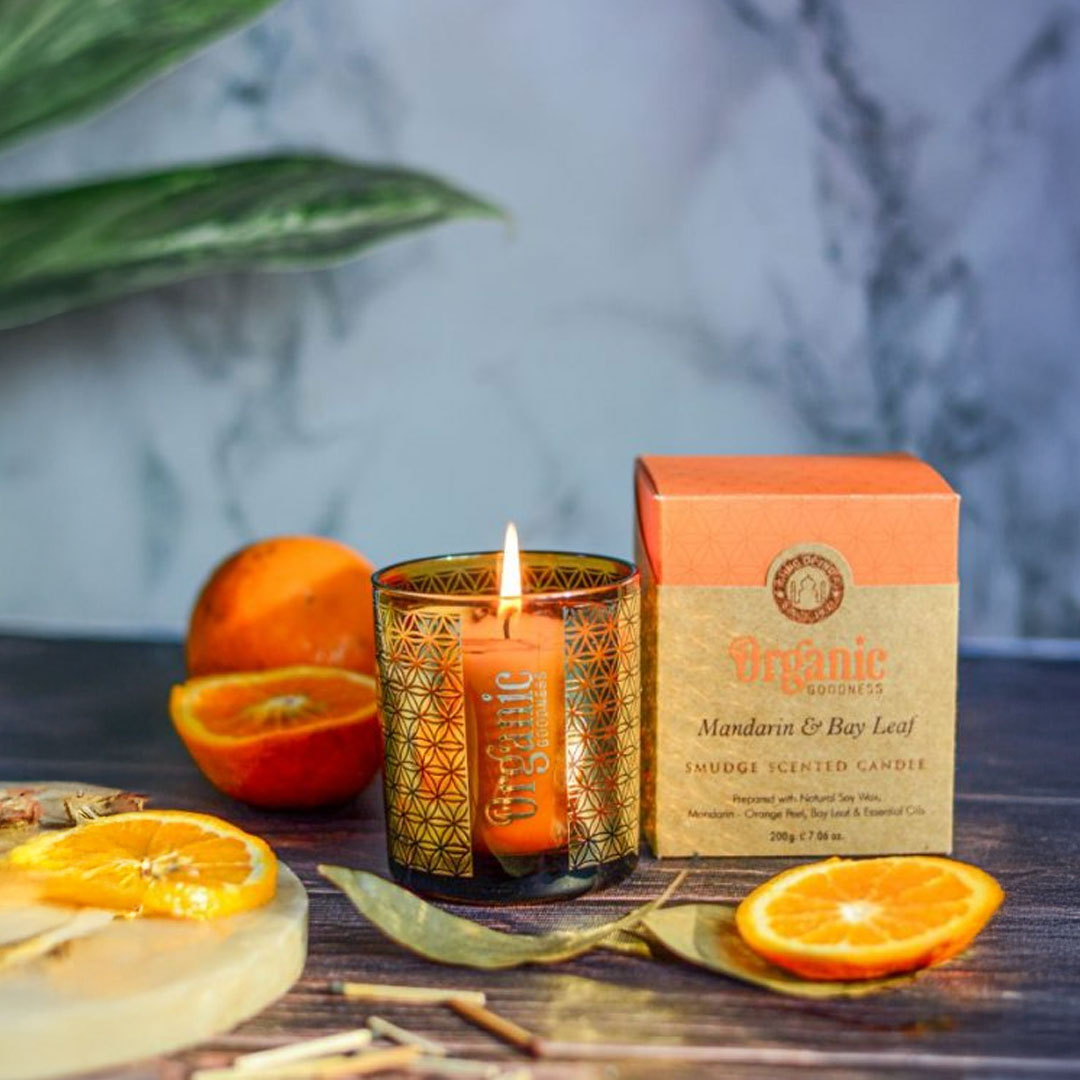 Candela in cera di Soia con frammenti di Mandarino e Alloro 200 grammi
