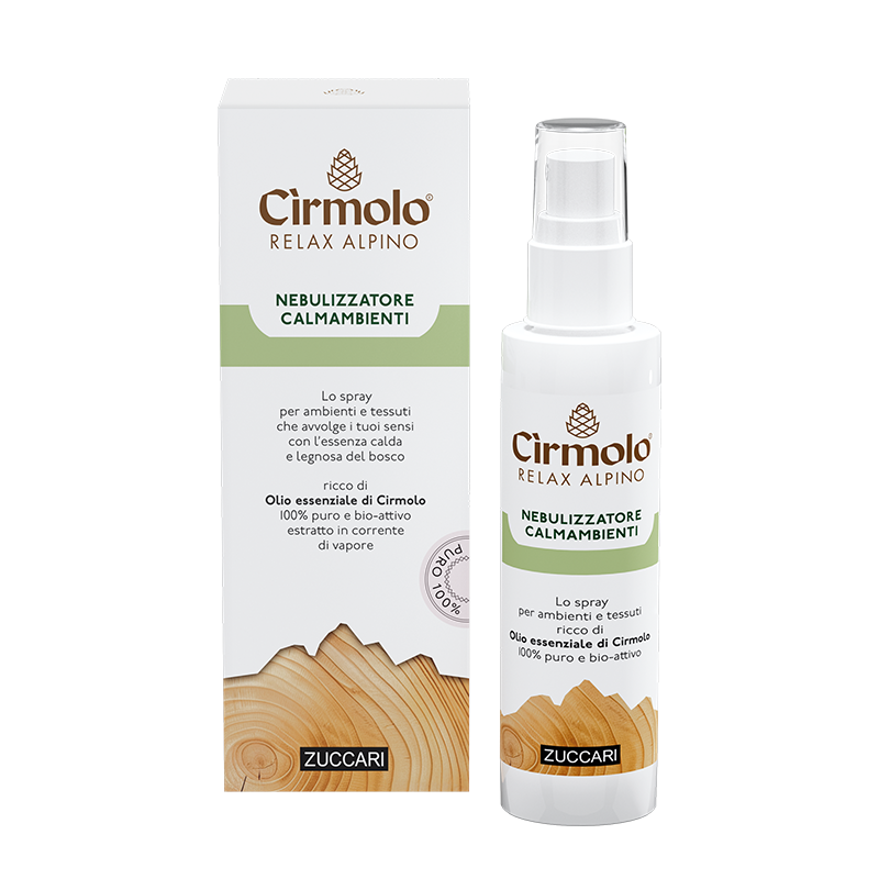 Ricco di Olio essenziale di Cirmolo 100% puro e bio-attivo estratto in corrente di vapore. Spray no gas.