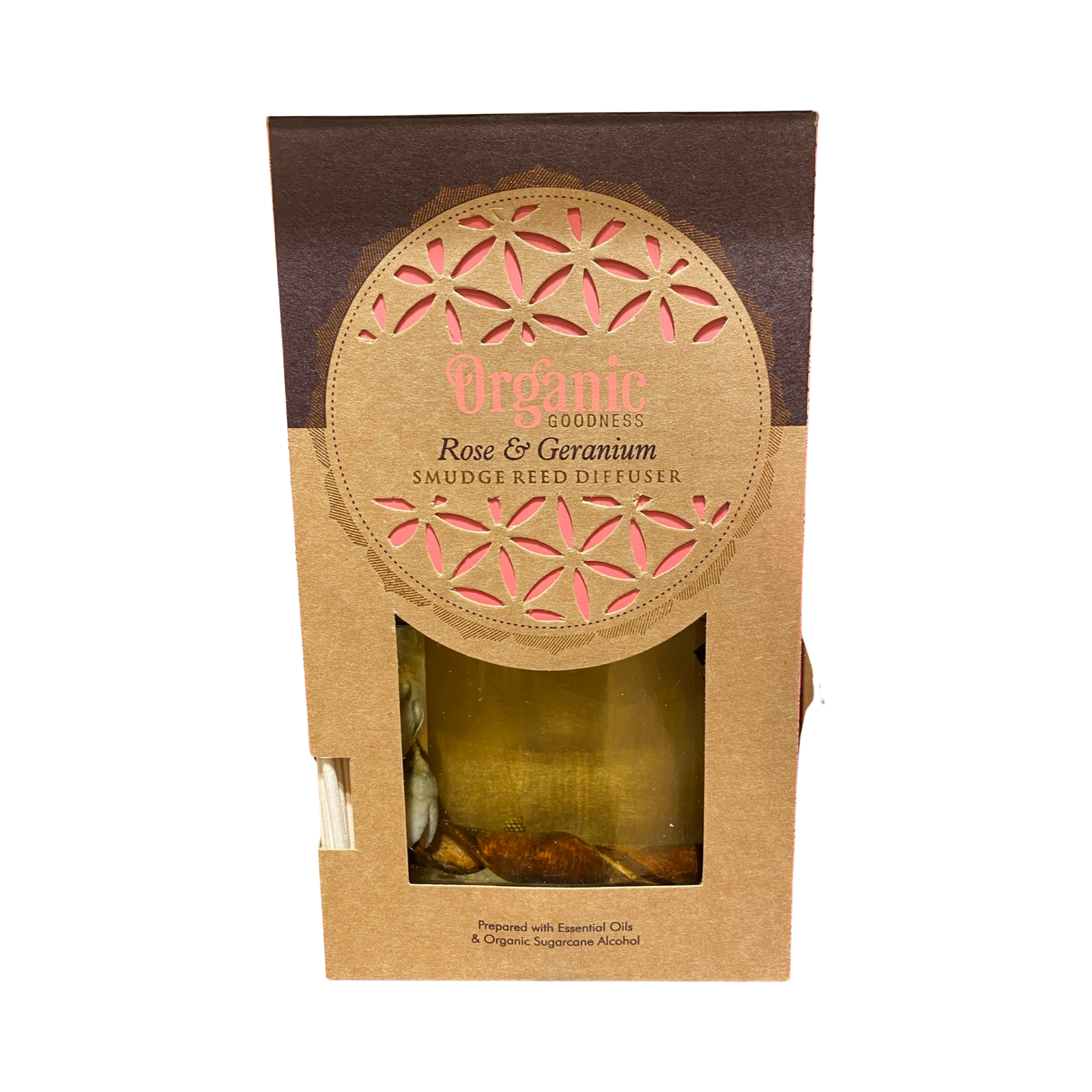 Diffusore con bastoncini al profumo di Rosa e Geranio. A base di alcool biologico alimentare e oli essenziali. Il diffusore è reso più bello dalle foglie, i rametti e i fiori inseriti all’interno della bottiglia. Confezione da 150 ml.