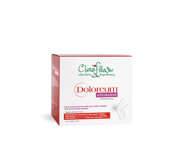 Integratore alimentare a base di Metilsulfonilmetano, Glucosamina di origine vegetale, PUREWAY-C™, Acido ialuronico ad alto peso molecolare da biofermentazione, Bromelina ad alta titolazione 2500 GDU/g ed Estratto secco di Boswellia (AKBAMAX®) con edulcorante.