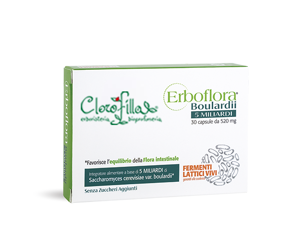 Integratore alimentare a base di Saccharomyces cerevisiae var. boulardii, probiotico che favorisce l’equilibrio della flora intestinale.