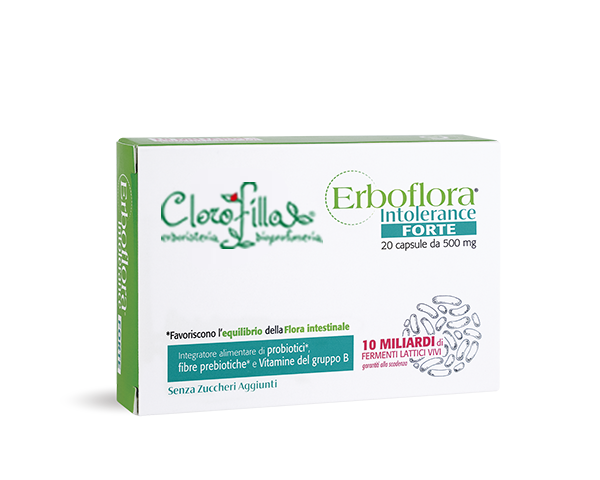 In questo contesto, ErboFlora Intolerance Forte rappresenta un valido sostegno: si tratta di un integratore alimentare in capsule, formulato come simbiotico, cioè un’associazione sinergica tra probiotici (fermenti lattici vivi) e prebiotici, con l’aggiunta di vitamine del gruppo B, che favoriscono il metabolismo energetico e il buon funzionamento del sistema nervoso e immunitario.