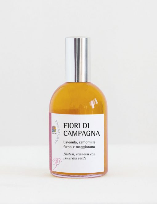 Ingredients: Alcohol Denat (Alcohol di barbabietola), Aqua (Water), Lavandula augustifolia oil (olio essenziale di Lavanda), Anthemis nobilis (olio essenziale di camomilla romana), Origanum majorana (olio essenziale di maggiorana), Lolium multiflorum (fieno maggengo) *Linalool, *Limonene. *Presente naturalmente negli oli essenziali.
