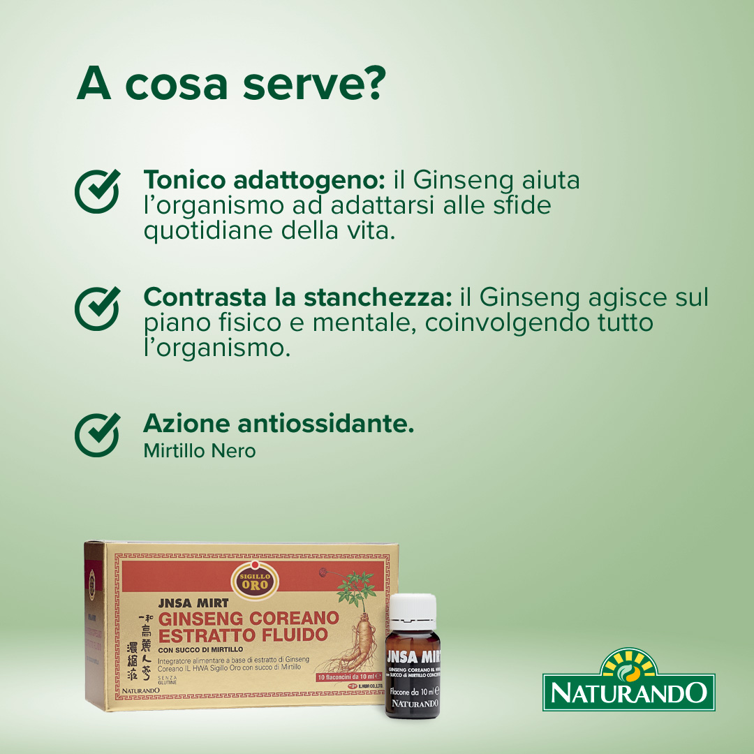 • Tonico adattogeno: il Ginseng aiuta l’organismo ad adattarsi alle sfide quotidiane della vita.