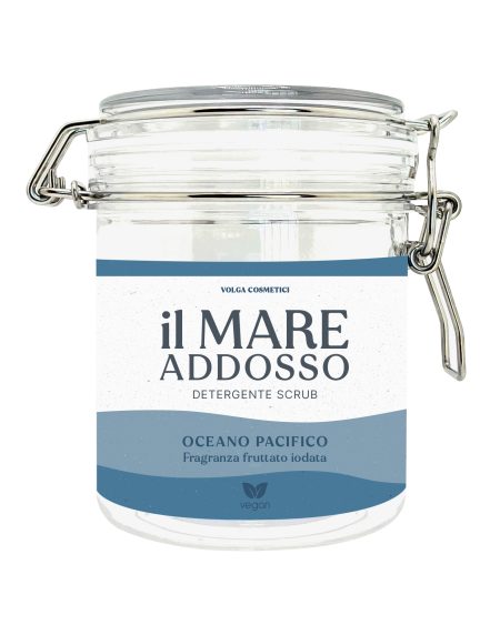 DETERGENTE E SCRUB – ll Mare addosso è un prodotto naturale per la detersione quotidiana, un concentrato di mare a base di sale marino ed oli vegetali ad alta tollerabilità cutanea. Mentre deterge, rinnova le cellule, regola la sudorazione, ripristina il PH, deodora a lungo, arricchisce con le proprietà intrinseche dell’acqua marina e degli oli contenuti che svolgono anche un’azione emolliente, idratante, riequilibrante ed addolcente. Può considerarsi un trattamento di talassoterapia o terapia del mare che sfrutta le tante proprietà benefiche dell’acqua marina.