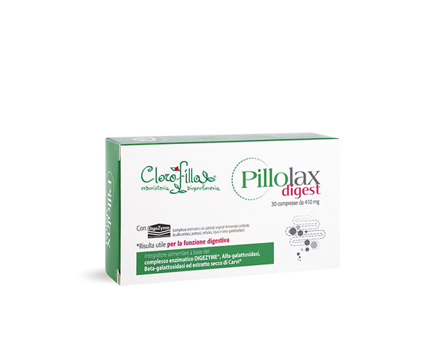 PILLOLAX DIGEST è un integratore alimentare a base del complesso enzimatico Digezyme®, Alfa-galattosidasi, Beta-galattosidasi ed estratto secco di Carvi. Il Carvi risulta utile per la funziona digestiva.