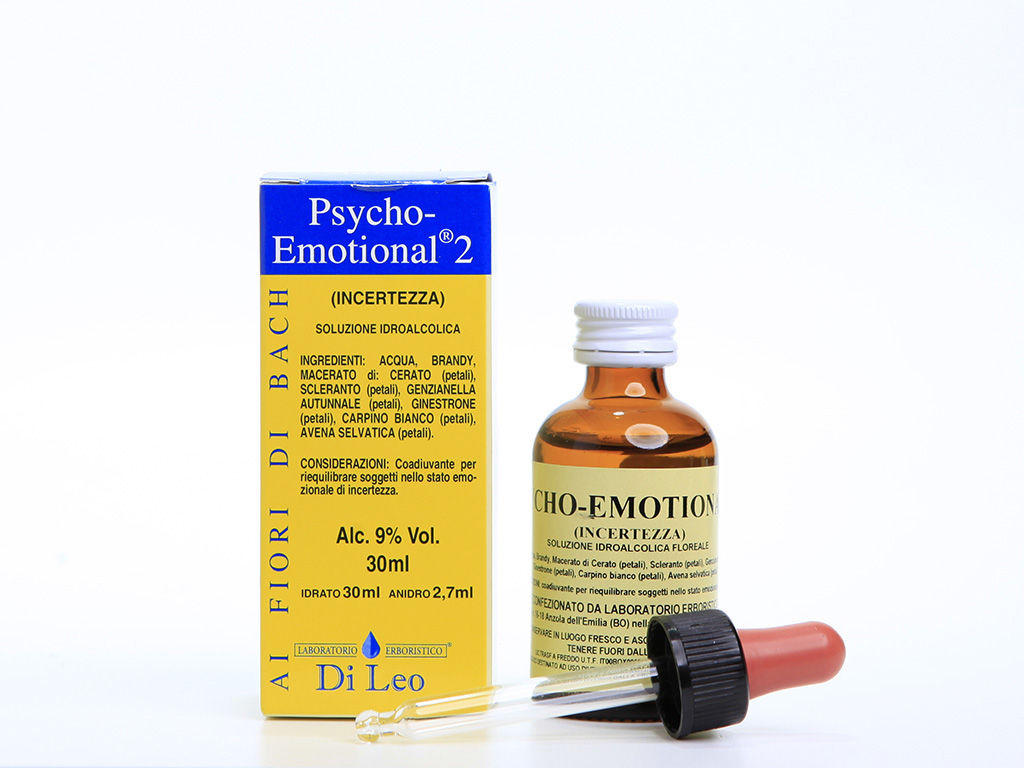 Psycho-Emotional® 2 è una soluzione idroalcolica ai Fiori di Bach coadiuvante per riequilibrare soggetti nello stato emozionale di incertezza.