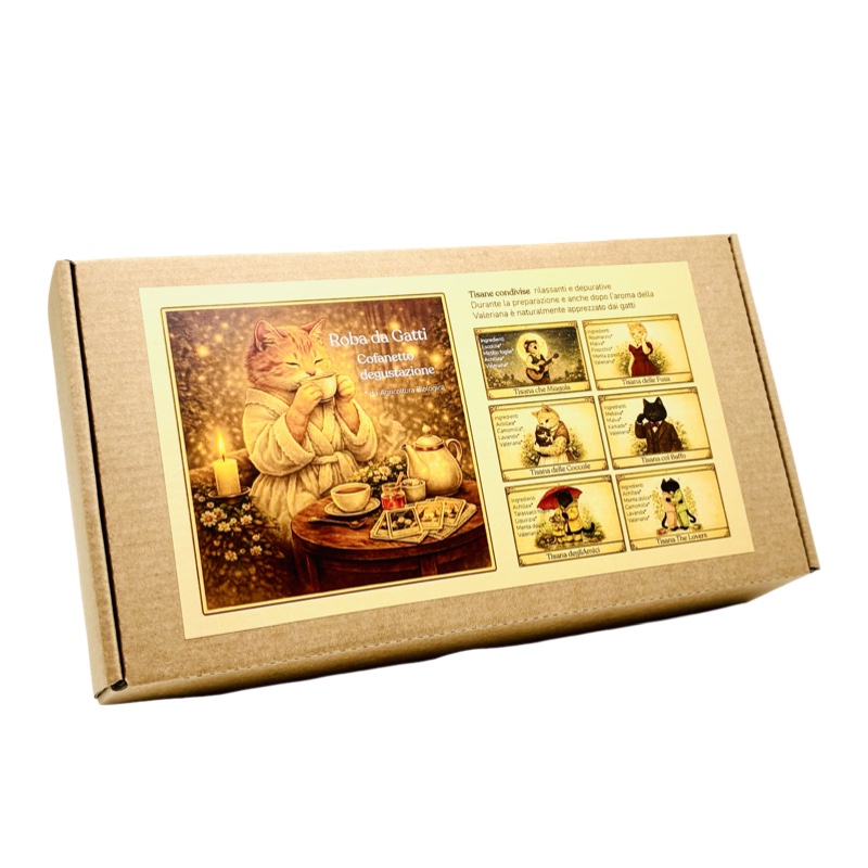 La scatola contiene 5 filtri delle seguenti tipologie di tisane della linea Roba da Gatti: