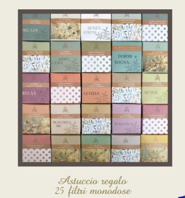 Selezione di 25 tisane, infusi di frutta e camomille.