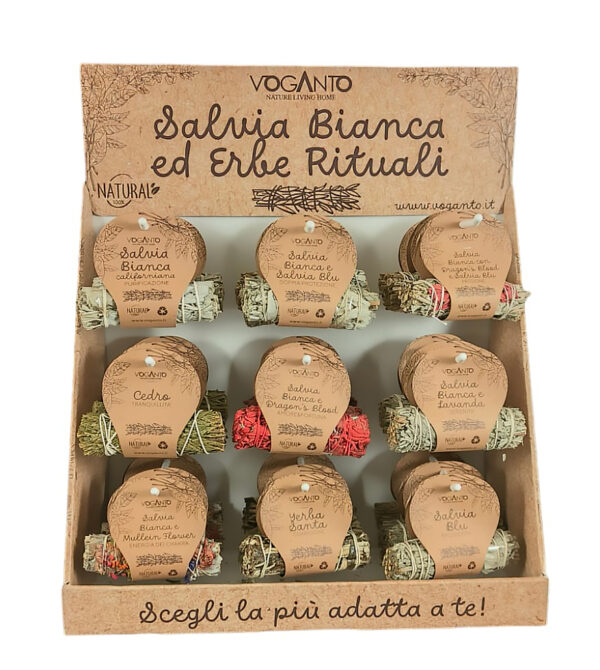 La salvia bianca è conosciuta per le sue proprietà di purificazione e protezione, mentre le altre Erbe rituali incluse sono utilizzate per attrarre energie positive e favorire il benessere spirituale.