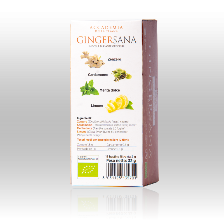 GINGERSANA (Zenzero rizoma, Cardamomo seme, Menta dolce foglie, Limone pericarpo)