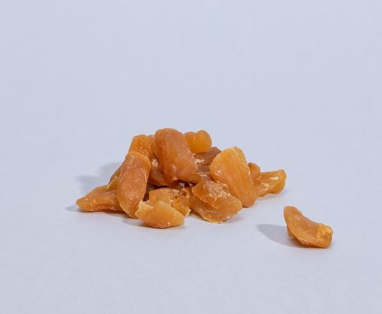 Zenzero rizoma candito (Zingiber officinale roscoe) in pezzetti morbidi da masticare senza aggiunta di saccarosio.